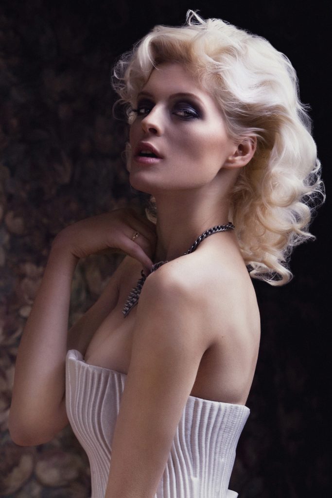 W połączeniu z klasyczną linią kości policzkowych powstaje wrażenie postaci wyrzeźbionej z lodu.